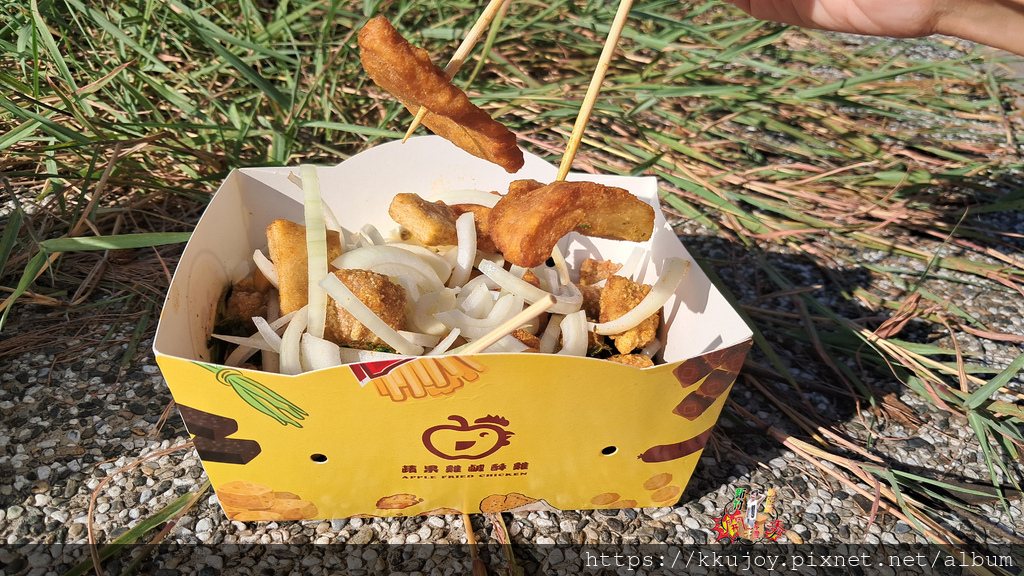 蘋果雞鹽酥雞連鎖炸物店,最厲害的辛香料添加;可以自己挑選蒜頭、洋蔥、九層塔等!! 我都和老闆說,我三種都要!